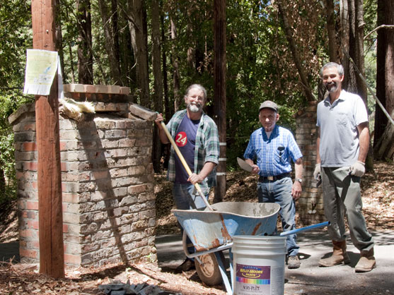 Jerry Glass, Joe Busa and of course Michael Saunders (Road Association President)fix the crumbling Pillar on ValleyView and Crossbow Way. Years ago, Joe owned much of this area. He installed these Pillars at a time when Crossbow was just an entrance to his backyard. Now its a street that loops around and connects with Flintlock and then Park. Now in his eighties, Joe still lives on the opposite corner, mows his own lawn, and is always quick to lend a helping hand.